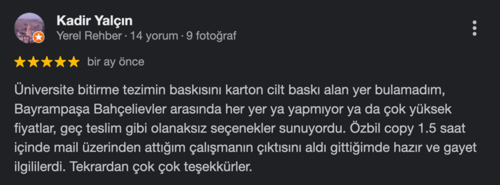 Bahçeşehir Üniversitesi’nin tüm Yüksek Lisans ve Doktora Tez ciltleme cilt işlemlerini Özbil Copy olarak biz yapmaktayız.