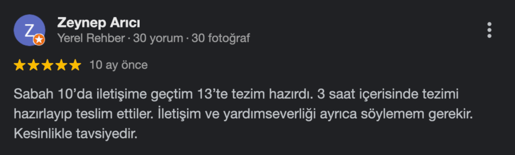 Tezinizi bize ulaştırdıktan sonra en geç 24 saat içinde teslim ediyoruz. Tezinizi sabah 11:00’a kadar bize ulaştırmanız halinde aynı gün teslim almak istiyorsanız bizi arayıp iletişime geçin.